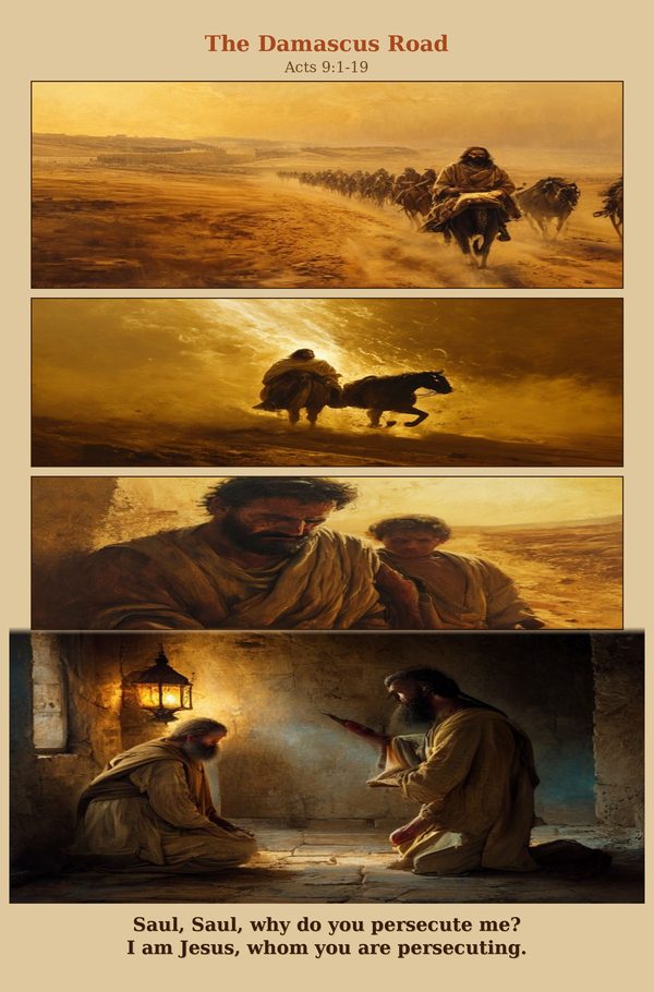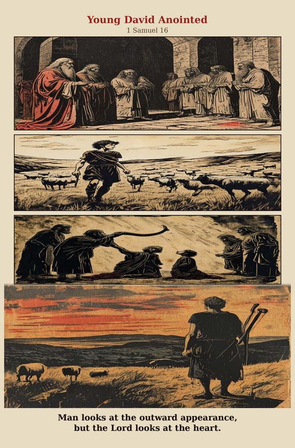 Hand-prompted, AI-illustrated comic strips of the characters, stories, and teachings of scripture — Old and New Testament.
